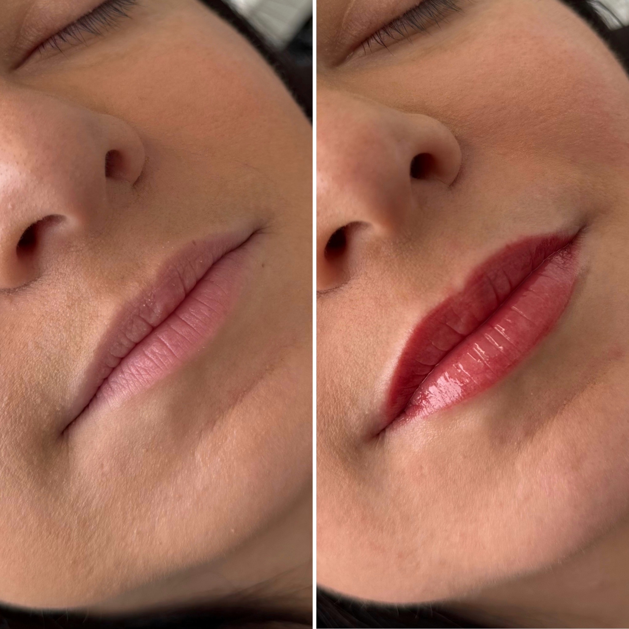 Lip blushing is a semi-permanent treatment that enhances your lips’ natural color and shape for a fuller, more defined look. The subtle tint lasts 1 to 3 years, with occasional touch-ups recommended to maintain the colour.